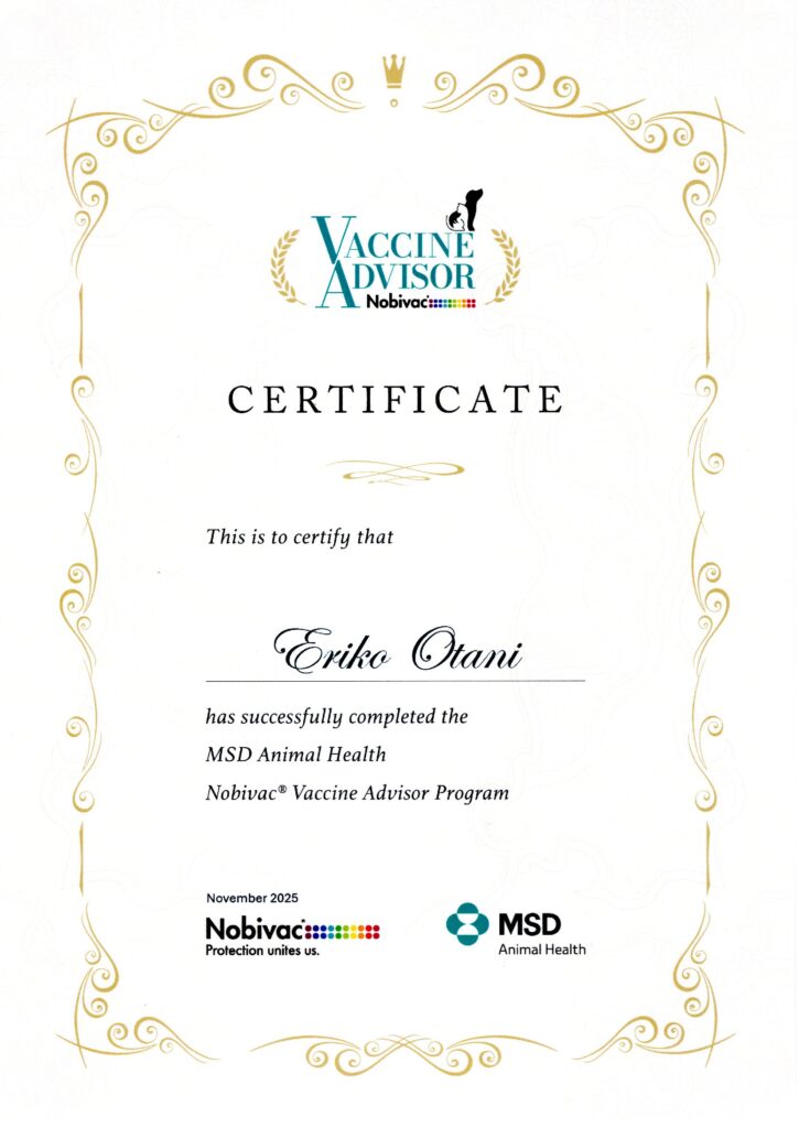 当院では、ワクチンアドバイザーを取得しておりペットの年齢・性格・生活環境に合わせて