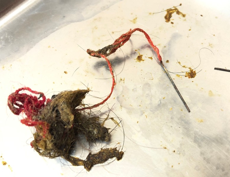 糸や紐は腸の中で絡まると腸を手繰り寄せてしまい血流が悪くなり重症化しやすいので注意が必要です。
