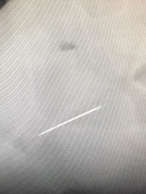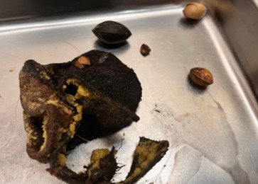「ビニールをかじった跡を発見!破片がないから少し飲み込んでしまっているかも・・・。」